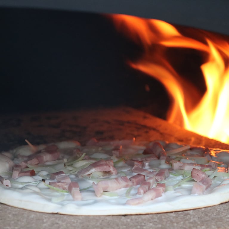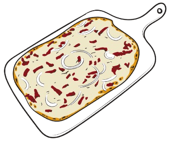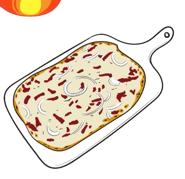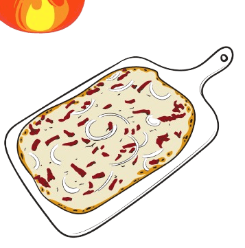 C'est surement la recette la plus connue qui a fait du Flammekueche un plat si célèbre ! Une base de crème au mélange gardé secret, une poignée d'oignon puis une de lardon et 'Hop au four !